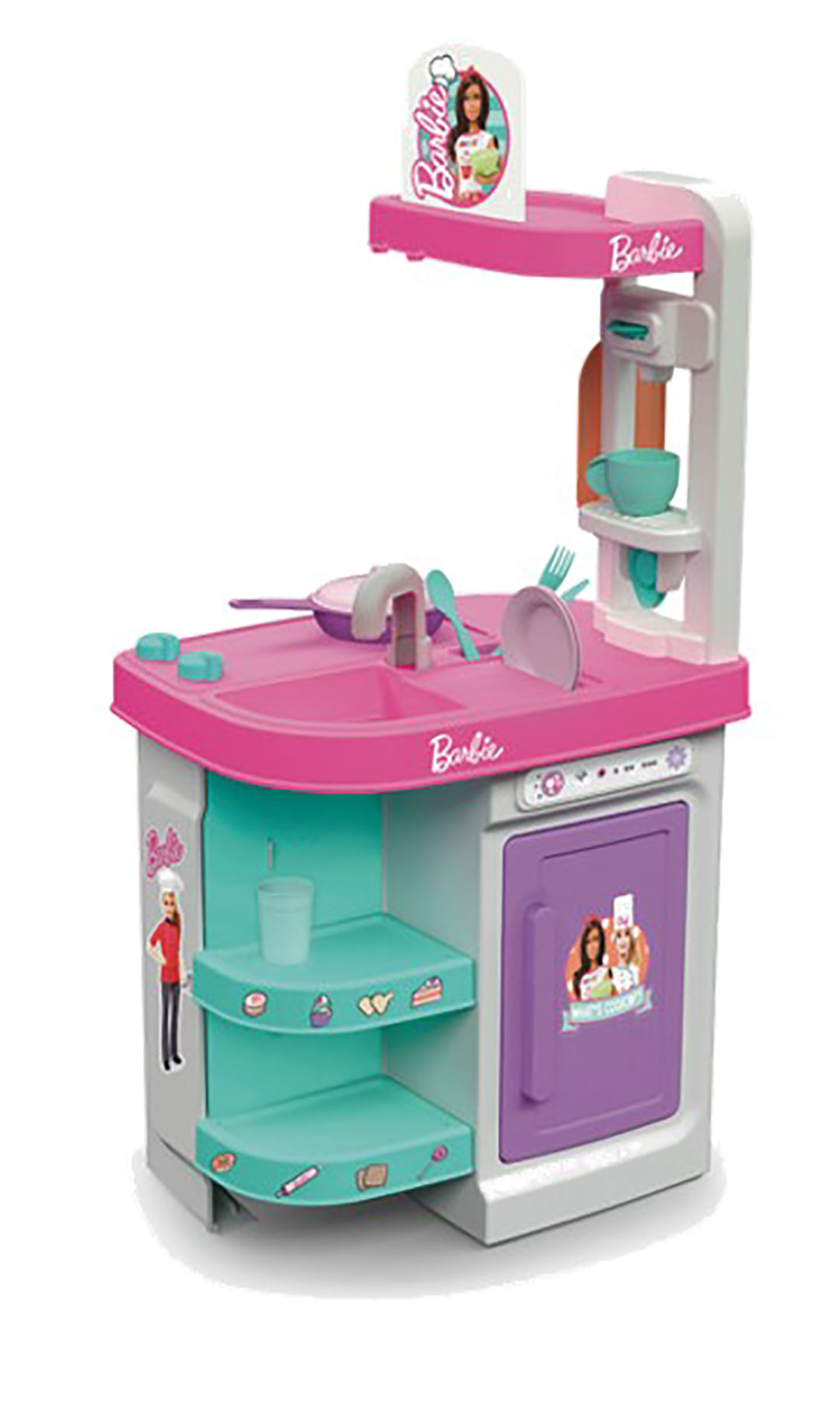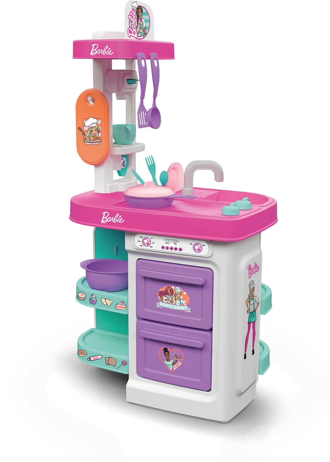 Cucina di Barbie per le piccole chef del futuro con lavello, piano cottura, frigorifero, macchina del caffè con cialde, forno, forno a microonde e tanti accessori!