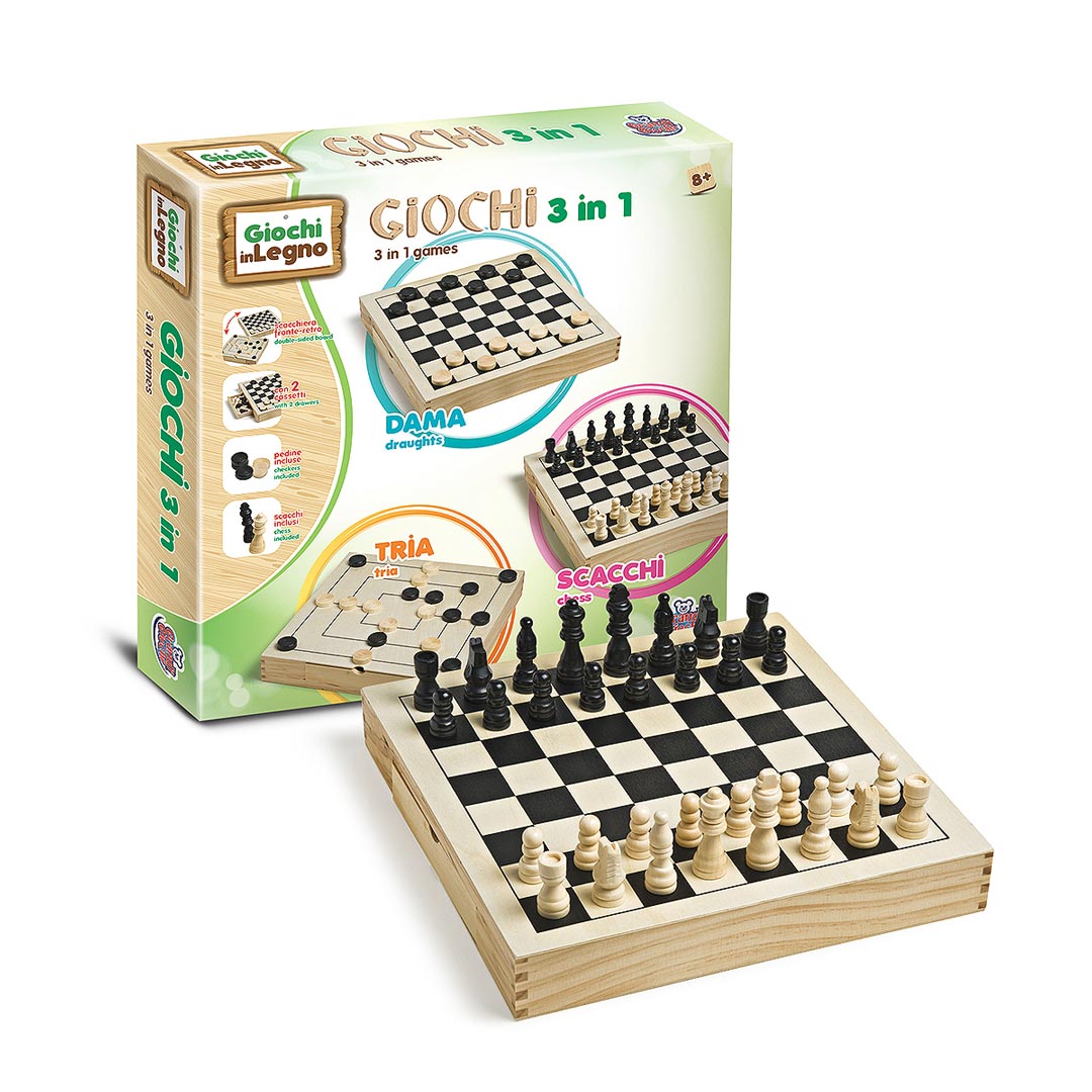 gioco: dama e scacchi aiuteranno il bambino a sviluppare la logica in un’aura di divertente e sana competizione! Capovolgendo la superficie di gioco sarà possibile anche cimentarsi in una partita nel tradizionale gioco della tria.