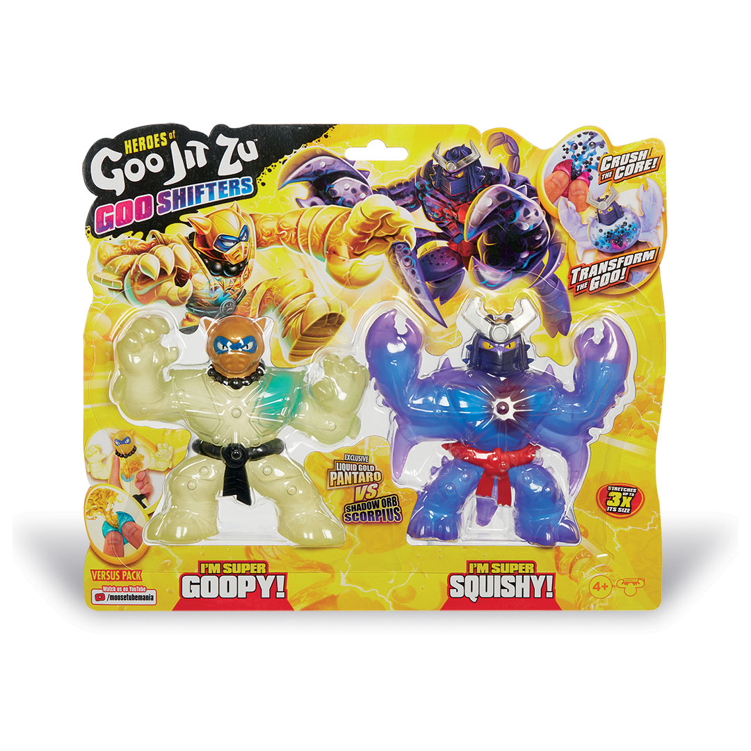 Personaggi Goo Jit Zu versus pack in versione Goo Shifters, da schiacciare e allungare. Assortimento di 7 eroi ancora più potenti! All’interno una sfera da schiacciare per attivare la trasformazione. Altezza 13 cm.