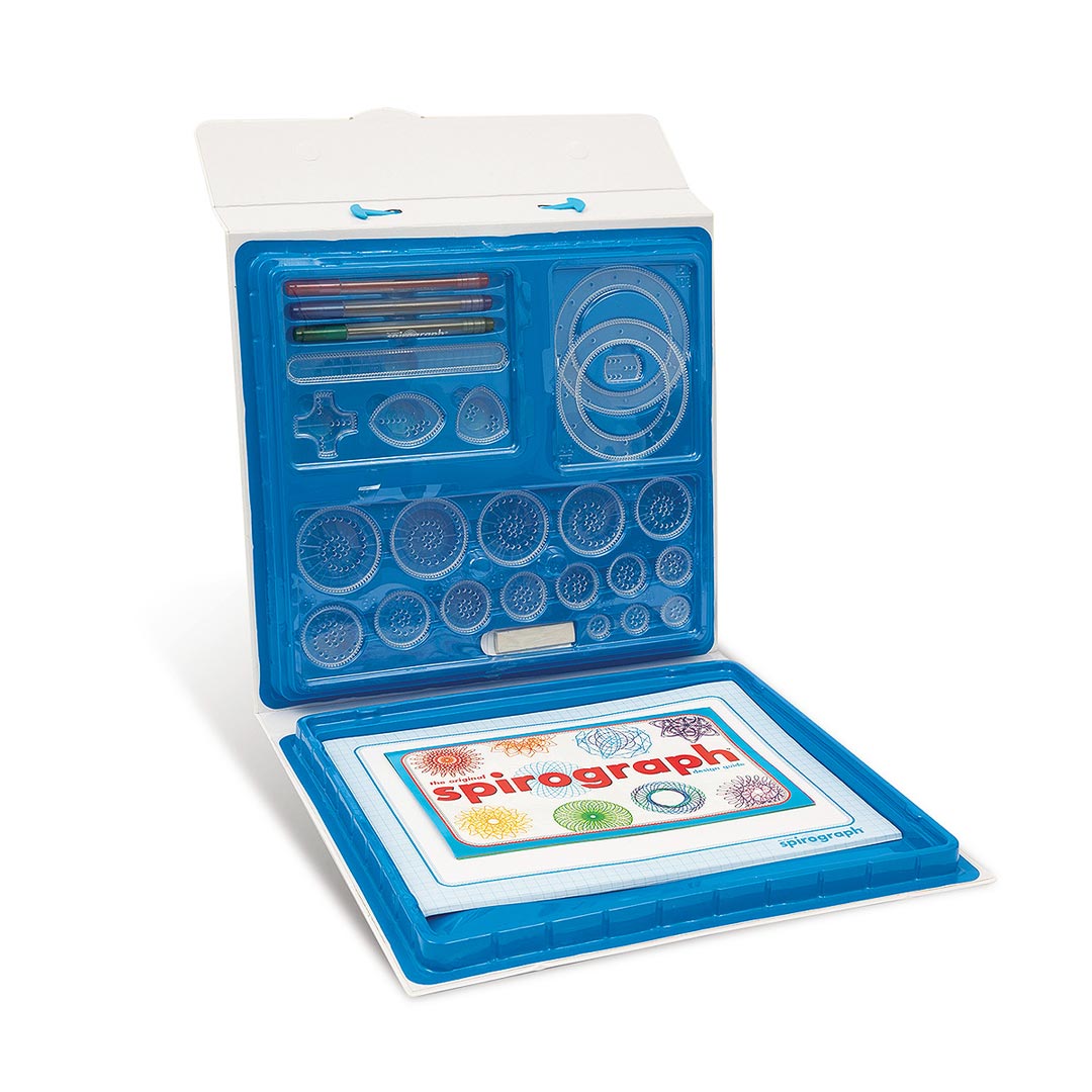 Con il super kit Spirograph con 45 accessori di precisione, si possono realizzare incredibili disegni! Una comoda valigetta che si può portare sempre con sè per scatenare ovunque la fantasia!