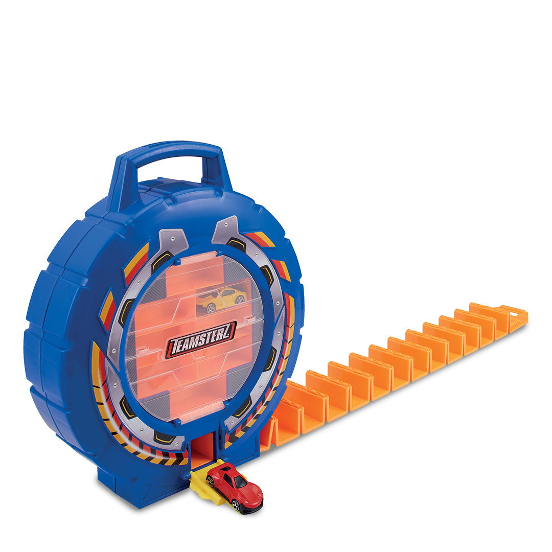 Valigetta Load & Launch per contenere e caricare fino a 23 auto e con rampa di lancio. 2 auto incluse. Compatibile con veicoli Hot Wheels.